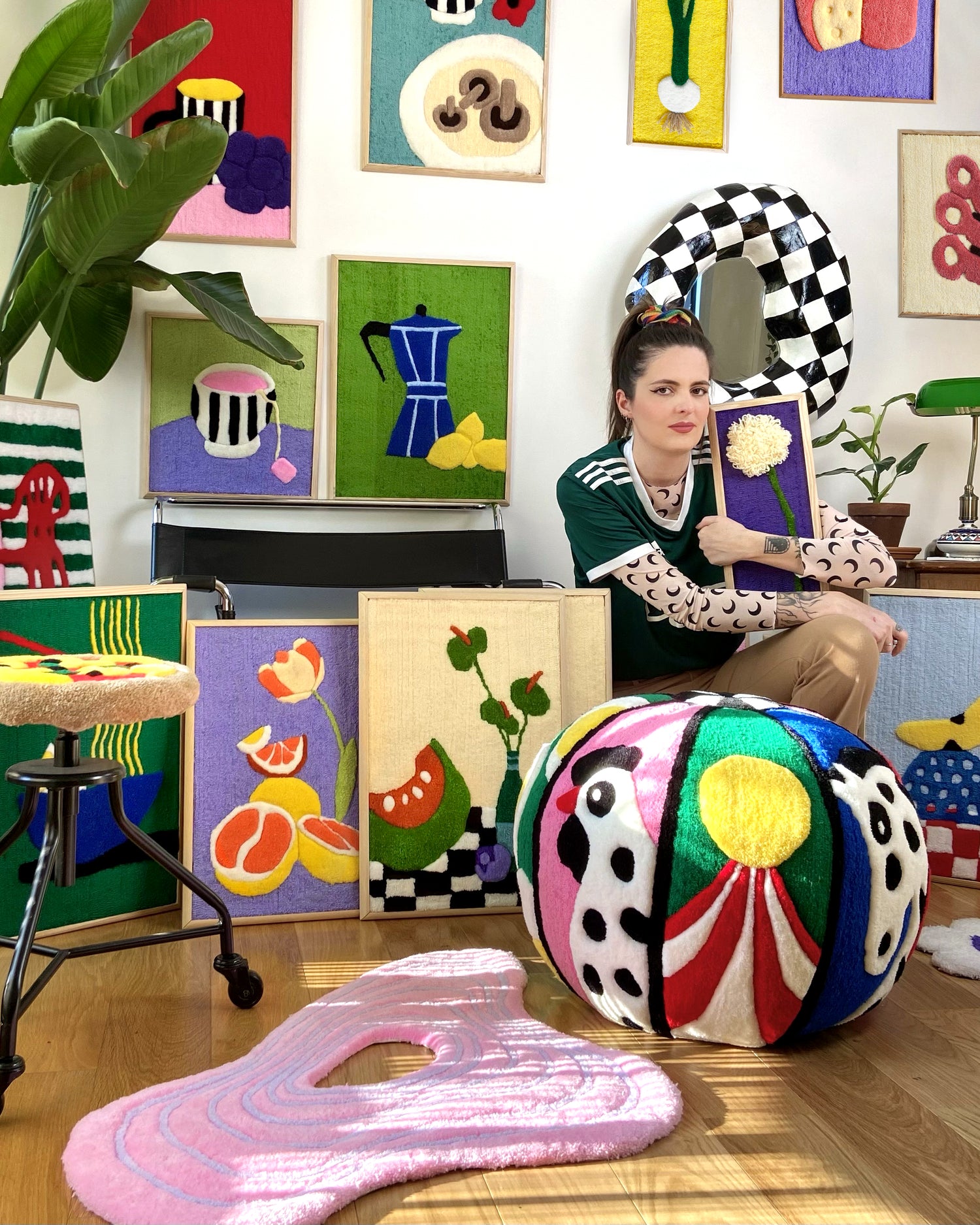 Après plusieurs années en tant que directrice artistique en agence de publicité, je décide d’allier mon métier et ma passion pour le travail manuel. En 2020, je découvre le tufting, une technique artisanale permettant de fabriquer des tapis. Cette pratique devient pour moi un moyen d’explorer librement la couleur et la matière et donne naissance à Lala Touffe en février 2021.