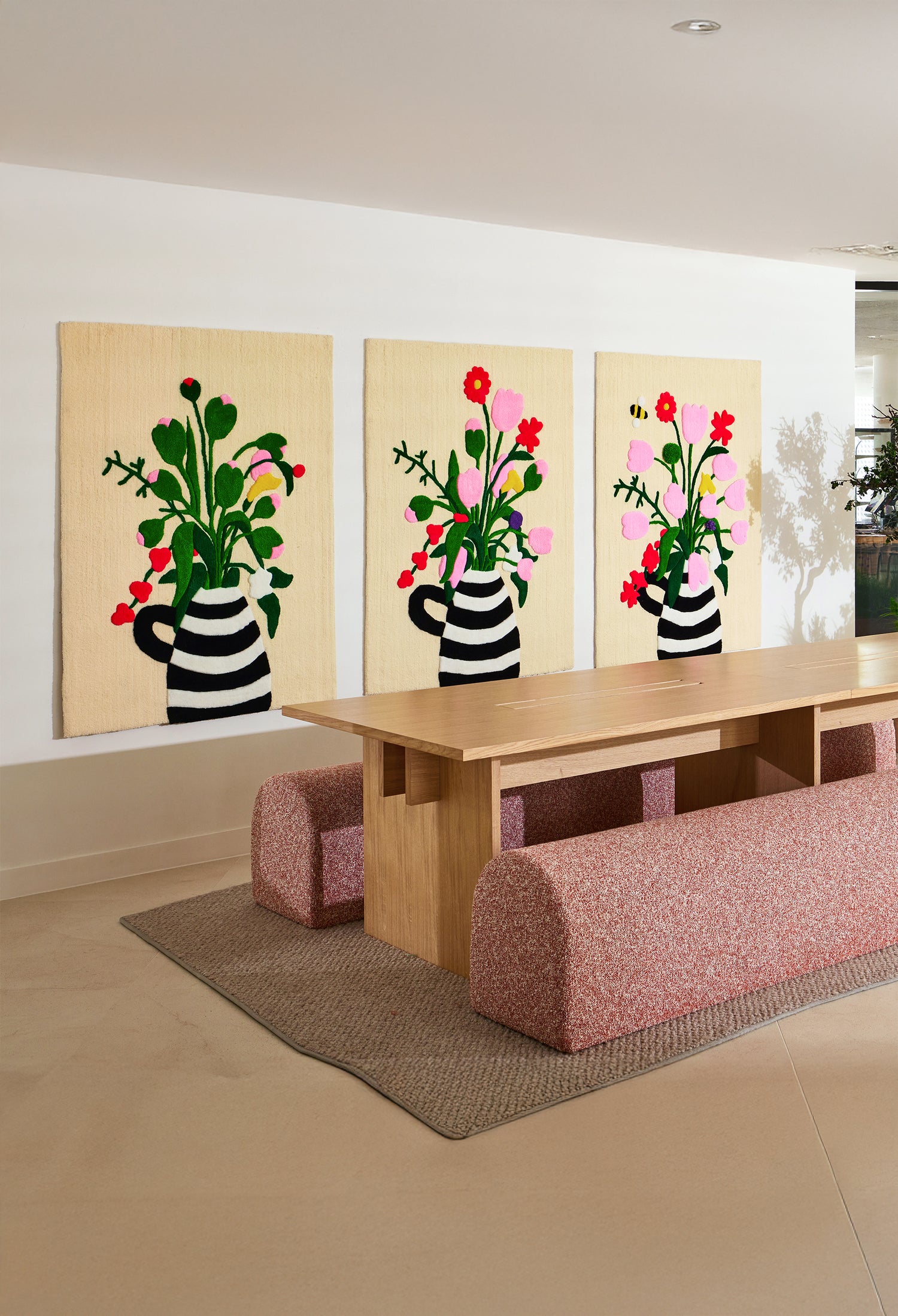 Commandé par Cocorico Paris, agence de design global spécialisée dans la création d’identités et d’expériences de marque, ce triptyque textile a été imaginé et dessiné dans mon studio pour le projet "Urban Garden".